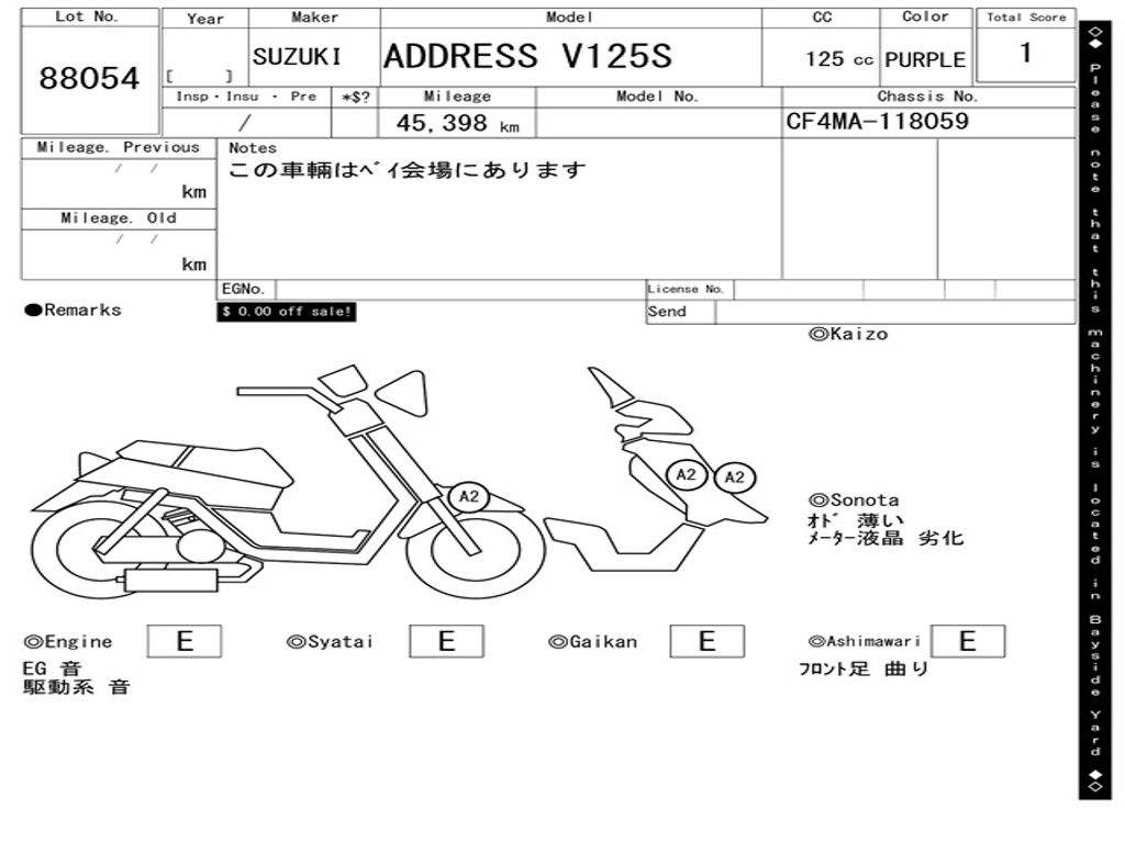 | Аукцион | ARAI BAYSIDE |