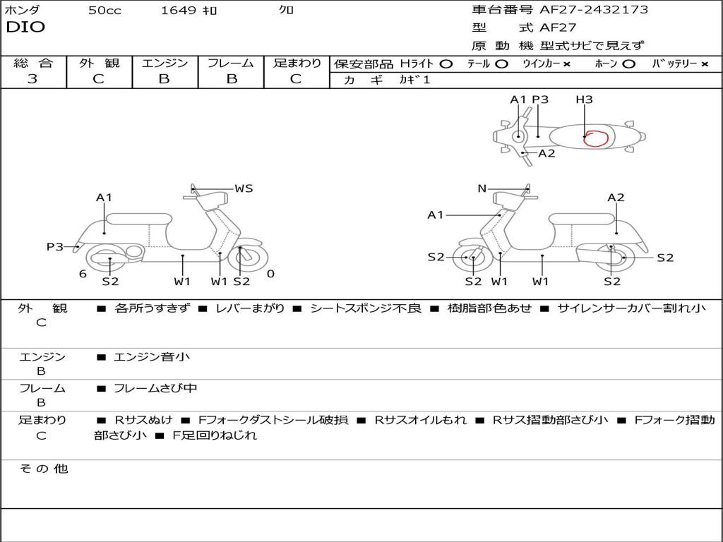 | Номер рамы / VIN | AF27-2432173 |
