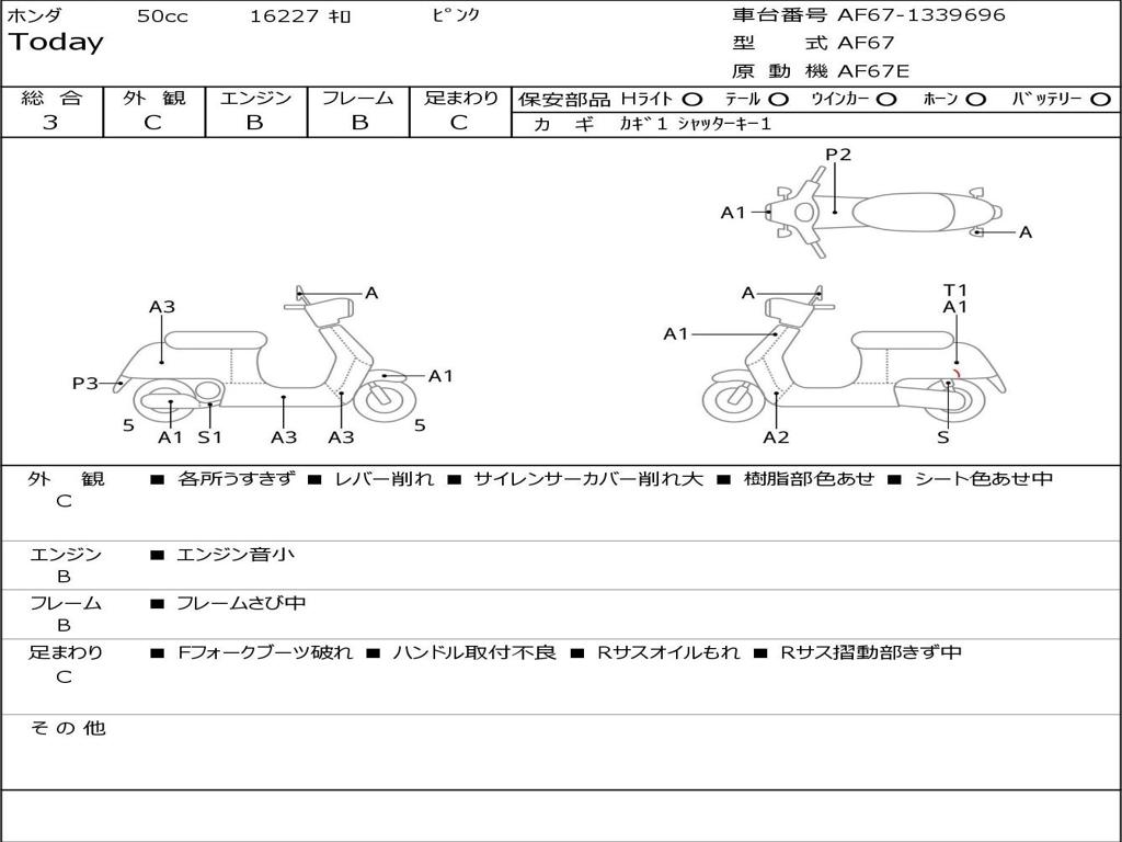 | Номер рамы / VIN | AF67-1339696 |