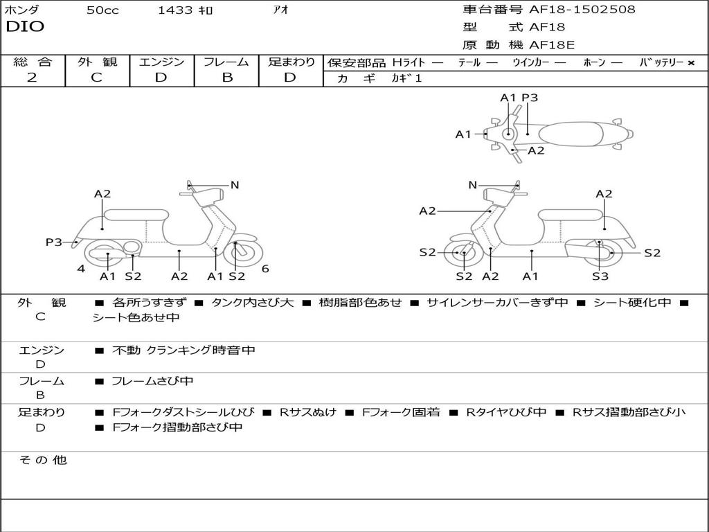 | Номер рамы / VIN | AF18-1502508 |