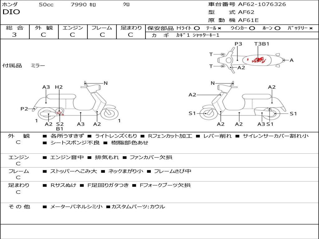 | Номер рамы / VIN | AF62-1076326 |