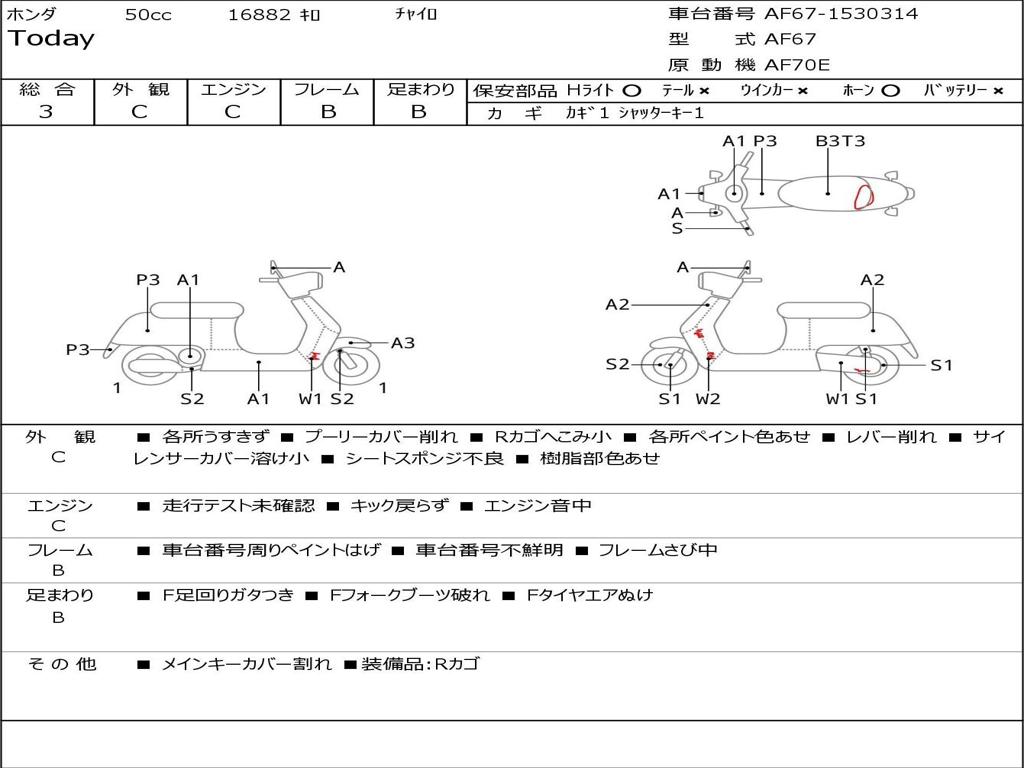 | Номер рамы / VIN | AF67-1530314 |
