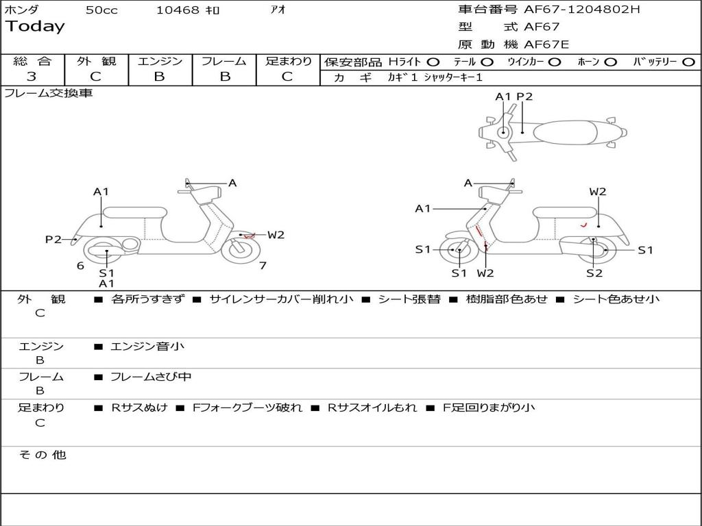 | Номер рамы / VIN | AF67-1204802H |