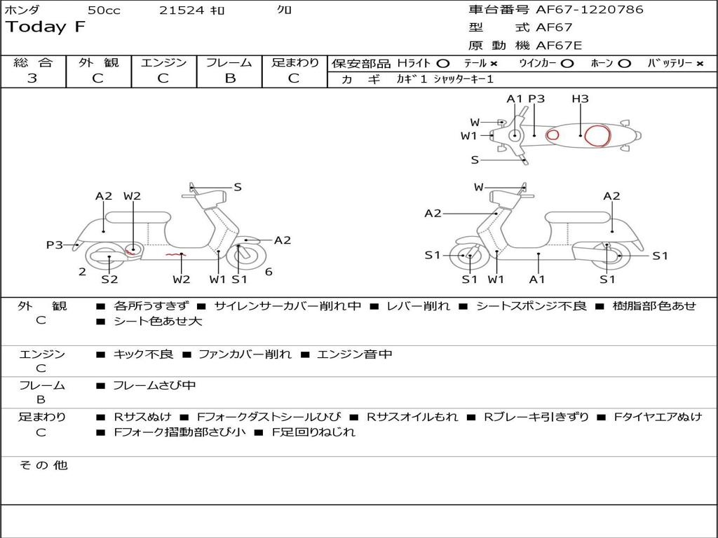 | Номер рамы / VIN | AF67-1220786 |