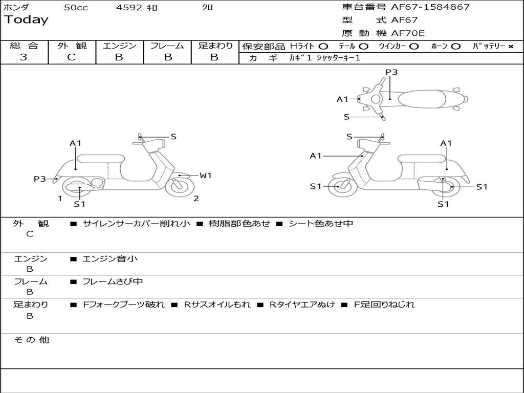 | Номер рамы / VIN | AF67-1584867 |